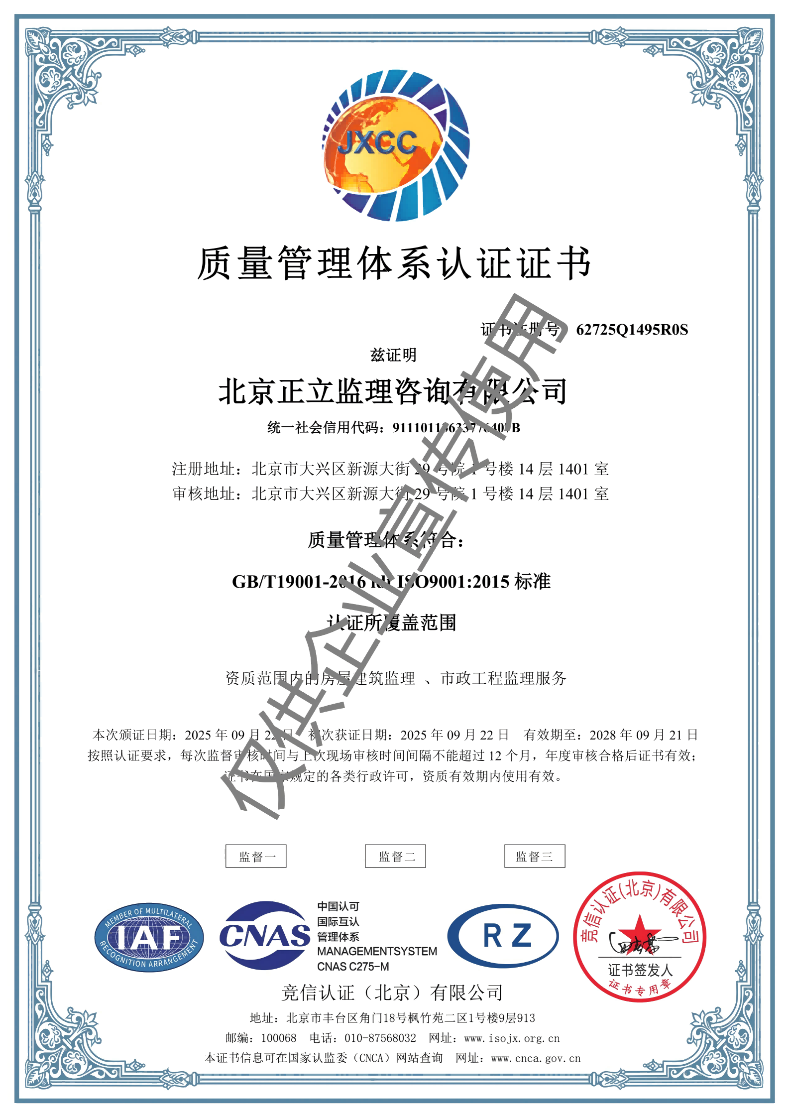 北京正立監理咨詢有限公司成立于1998年7月1日,其前身隸屬于北京市公路質量監理站。具有獨立法人資格,是獨立核算、自負盈虧的經濟實體。企業經營范圍:公路工程監理、交通工程監理、市政公用工程建設監理、工業與民用建筑工程監理、工程監理咨詢、技術咨詢、技術培訓等。